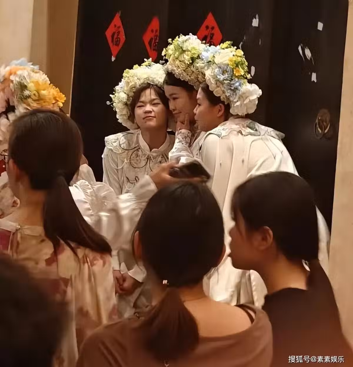全紅嬋難得與姐妹一起合影,三姐妹全紅月 全紅嬋 全紅桃臉靠在一起擠表情,特別溫馨畫面,姐妹仨感情特別好。................................................