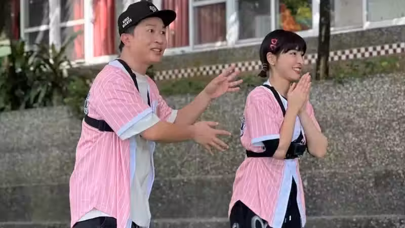 ▲張立東(左)硬闖啦啦隊女神峮峮(右)的房間,更和對方單獨在房內待了1分鐘,心滿意足地說:「蠻香的。」(圖/中視提供)