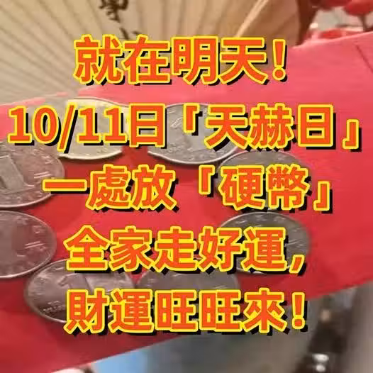 就在明天!10/11日「天赫日」一處放「硬幣」全家走好運,財運旺旺來!