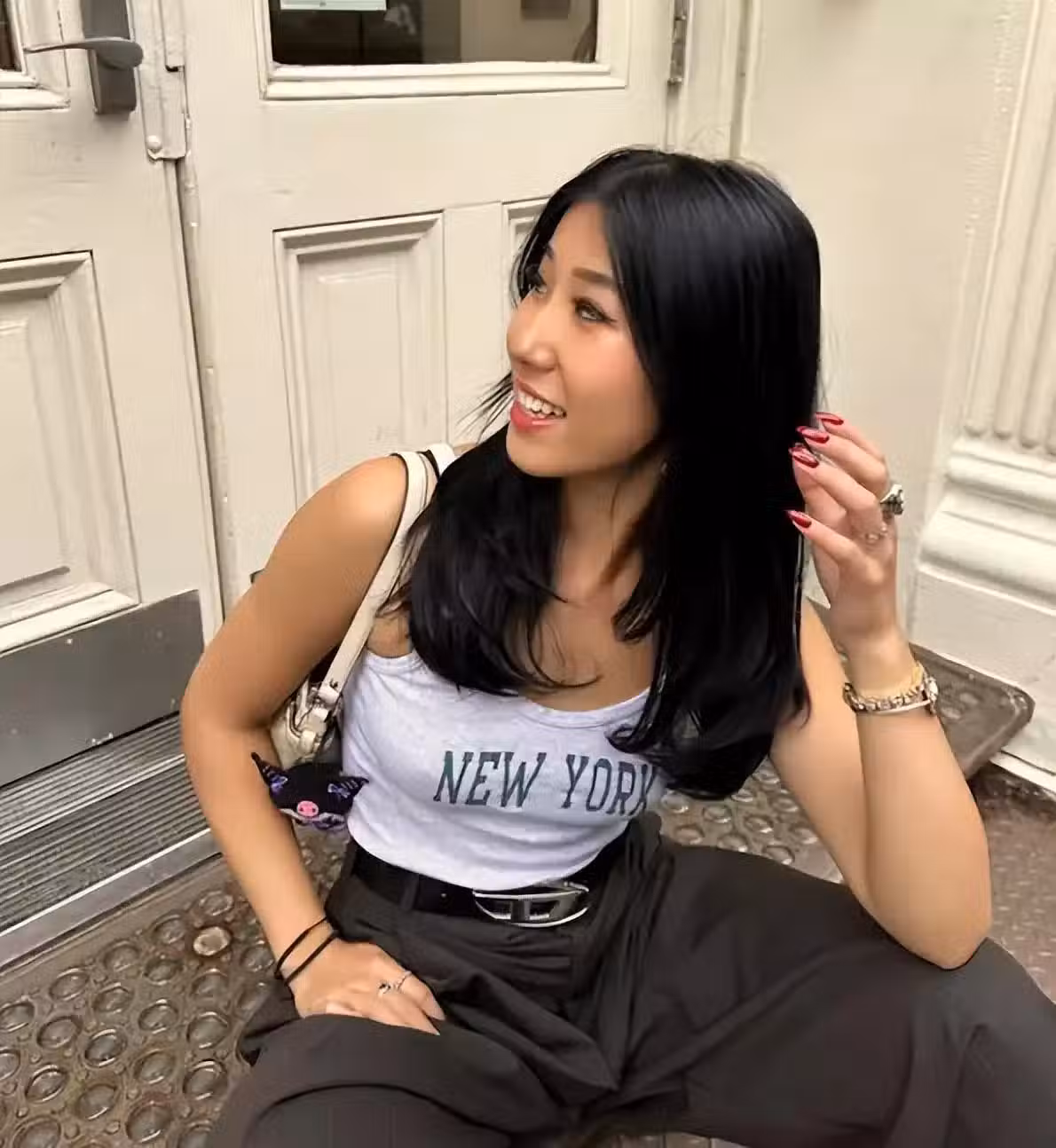 從照片中不難發現,Natalie在紐約街頭玩的很開心,穿著白色弔帶背心搭配長褲的她看起來活力滿滿,一頭烏黑的長髮披散在肩頭,雖然膚色有點黑,但是卻不影響其整體的氣質。