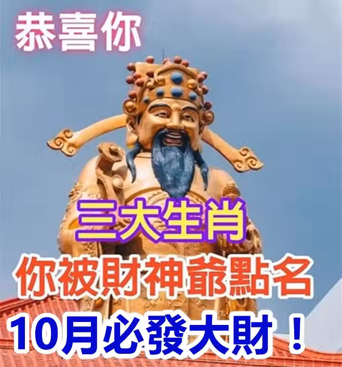 左手財神,右手貴人!「這3大生肖」被財神爺點名,10月必發大財:希望有你