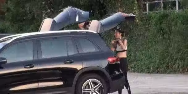 幾人跑完步之後,唐詩詠跟著發哥來到停車場,因為累到大汗淋漓,所以她站在車身後,不拘小節的把汗衫換了下來,穿上乾爽的上衣準備離開。不難看出,唐詩詠私下還是熱愛運動的,雖然離巢了這麼久,但生活也是多姿多彩又充實!
