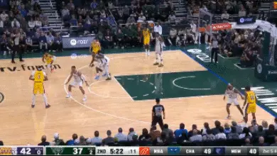 和濃眉完成手遞手後,文森特先是擺脫利拉德的防守然後再迎著大洛佩茲完成拋投。從這個回合看,文森特有著不錯的持投攻堅和終結技巧——別小看拋投,怎麼拋?拋多高?怎麼學問大了。