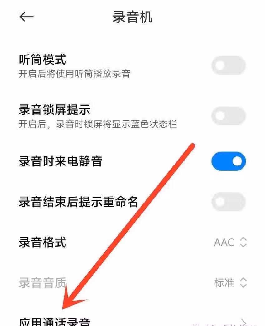那麼在設置頁面裡邊,我們往下可以看到一個應用通話錄音的功能選項,那麼我們點擊打開它
