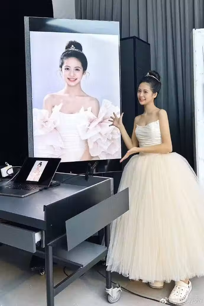 曝光照片中,只見「壽星女」小水晶身穿一襲純白抹胸輕婚紗,長發高高盤起且佩戴銀色鳳冠,五官精緻、仙氣十足,不論顏值還是身材都完美遺傳選美冠軍媽媽,但仍不及翁虹年輕時盛世美顏。