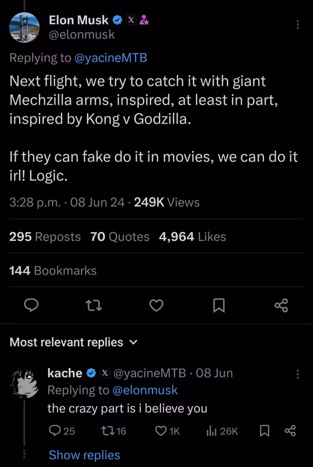 首次!SpaceX完成「筷子夾火箭」式星艦回收,馬斯克8年前設想成真