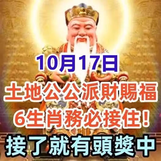 10月17日:土地公公派財賜福,6生肖務必接住!接了就有頭獎中