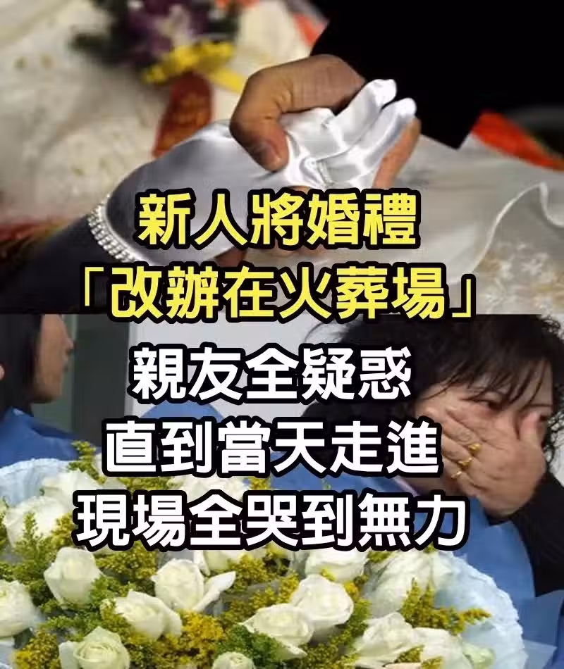 新郎將婚禮「辦在火葬場」親友全疑惑,直到當天「新人一走進現場」全哭到無力….新郎將婚禮「辦在火葬場」親友全疑惑,直到當天「新人一走進現場」全哭到無力….「結婚」本該是兩人幸福的見證大會,但中國這場婚禮卻完全沈浸在悲痛的情緒中,
