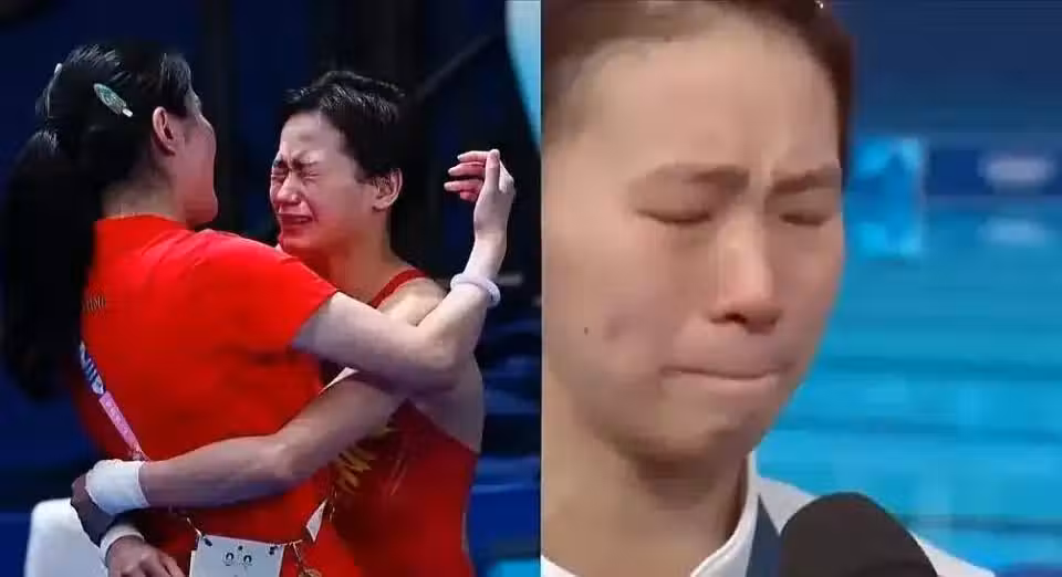 獲勝的全紅嬋,第一時間奔向教練陳若琳和隊友陳芋汐,緊緊擁抱在一起,淚水和笑容里有著千山萬水。