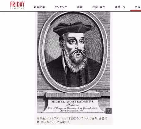 諾查丹瑪斯是16世紀法國知名星象大師,早在400年前就撰寫一本預言書《諸世紀》(原名《百詩集》),書中紀載至公元3797年的所有預言,而且多次預測歷史大事,像是法王亨利二世之死、法國大革命、希特勒崛起、美國前總統甘迺迪(Robert F. Kennedy)會遇刺身亡及倫敦發生大火等,多次預測都應驗成真。