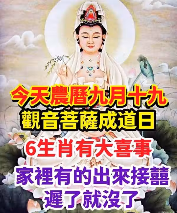 今天農曆九月十九,觀音菩薩出家日,6生肖有大喜事,家裡有的出來接囍,遲了就沒了
