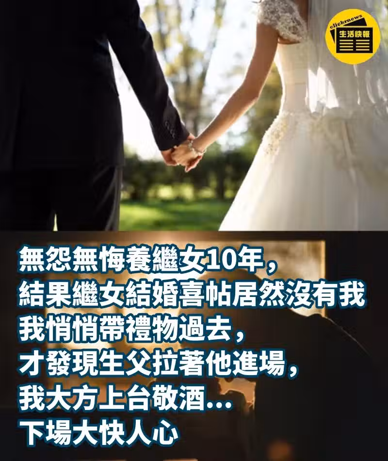 無怨無悔養繼女10年 ,結果繼女結婚,喜帖居然沒有我,我悄悄帶禮物過去,才發現生父拉著他進場,我大方上台敬酒...下場大快人心