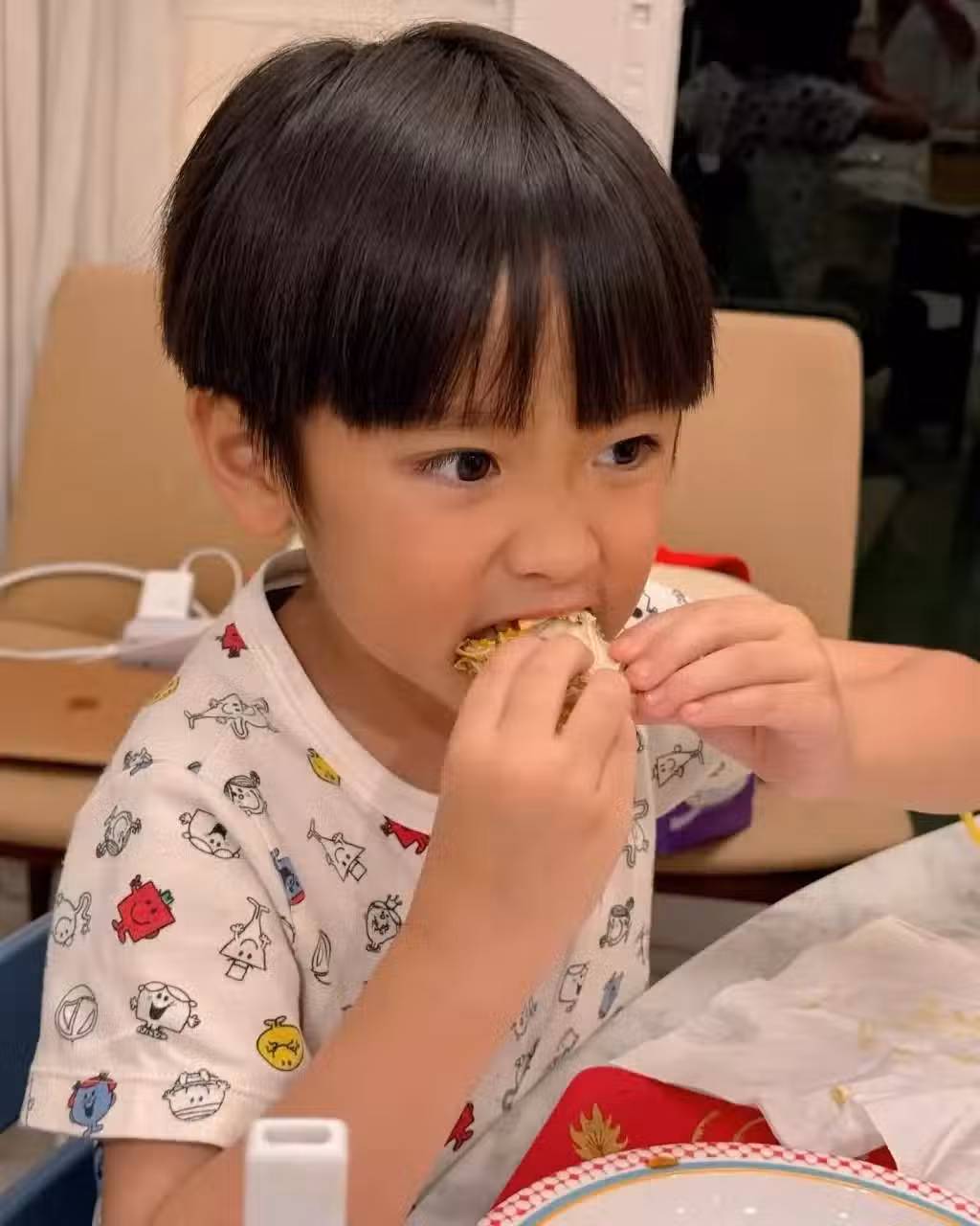 黃智賢到鄭嘉穎家中慶祝生日,有壽司刺身到會,又見到有大閘蟹,非常豐富,鄭嘉穎的兒子拍照期間緊盯食物,似乎好肚餓,十分搞笑。