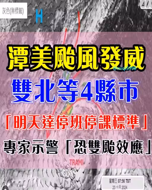 快訊/潭美颱風發威!雙北等4縣市「明天達停班停課標準」 專家示警:「恐雙台效應」