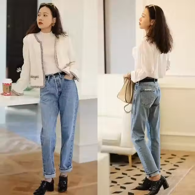 微胖的姐妹們可以選擇闊腿褲來搭配樂福鞋,闊腿褲最大的特點就是其整體版型較為寬鬆空蕩,遮肉顯瘦的效果非常好。而且闊腿褲整體的搭配氣質更加慵懶隨性,搭配樂福鞋可以輕鬆穿出不費力的高級感。