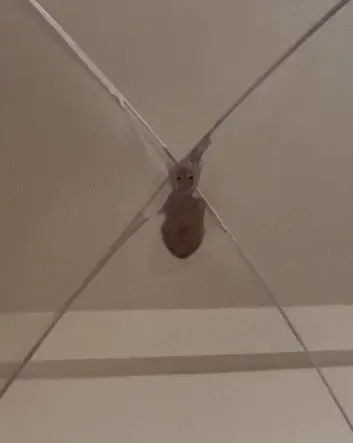 11月24號這天半夜,女子感覺到口渴就醒了,沒想到當她睜開眼睛,才發現有個黑壓壓的「不明物體」正壓在蚊帳的最頂上一動不動地盯著自己。