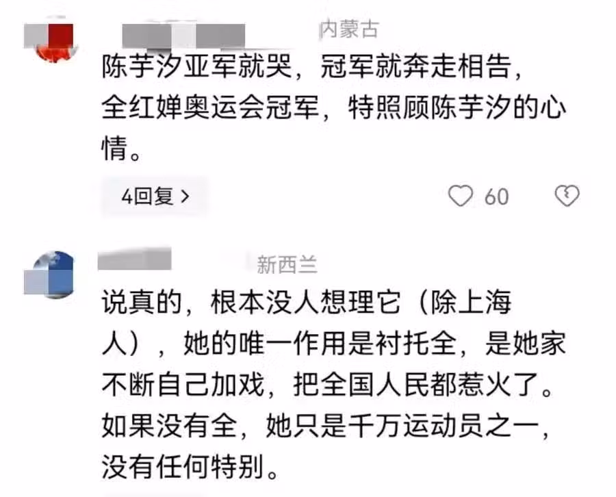 真沒必要捧一個踩一個,陳芋汐與全紅嬋都很優秀,兩人並列也沒問題,狀元榜眼的差距真的很細微,有時甚至只是運氣。