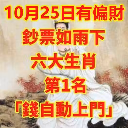 10月25日有偏財,鈔票如雨下的生肖! 第1名「 錢自動上門 」