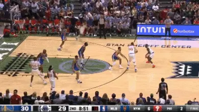 接到祖巴茨掩護後凱文·波特一個轉身有效擺脫穆迪,運一步稍作調整後完成中距離跳投。