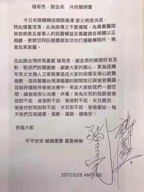 直到一紙聲明,人們才意識到,謝金燕終於在鏡頭之外,完成了與父親的重逢與和解。