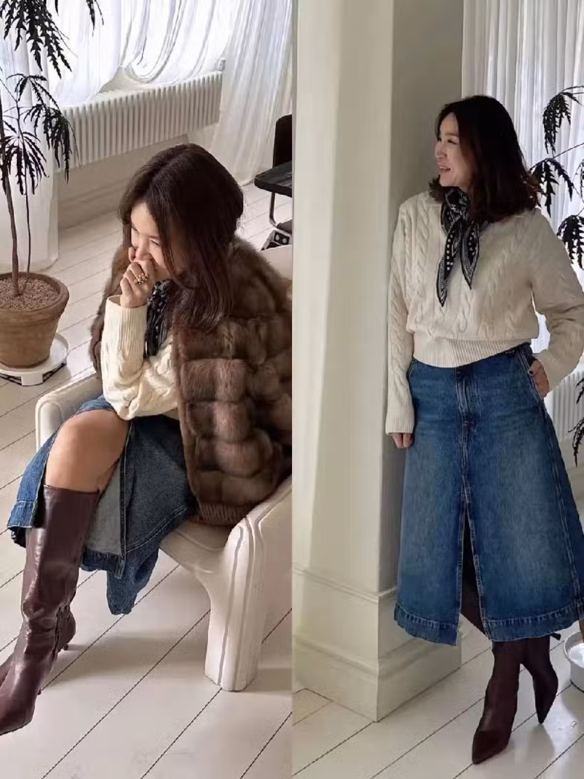 上面搭配毛衣,外搭大衣或者皮草都沒問題!