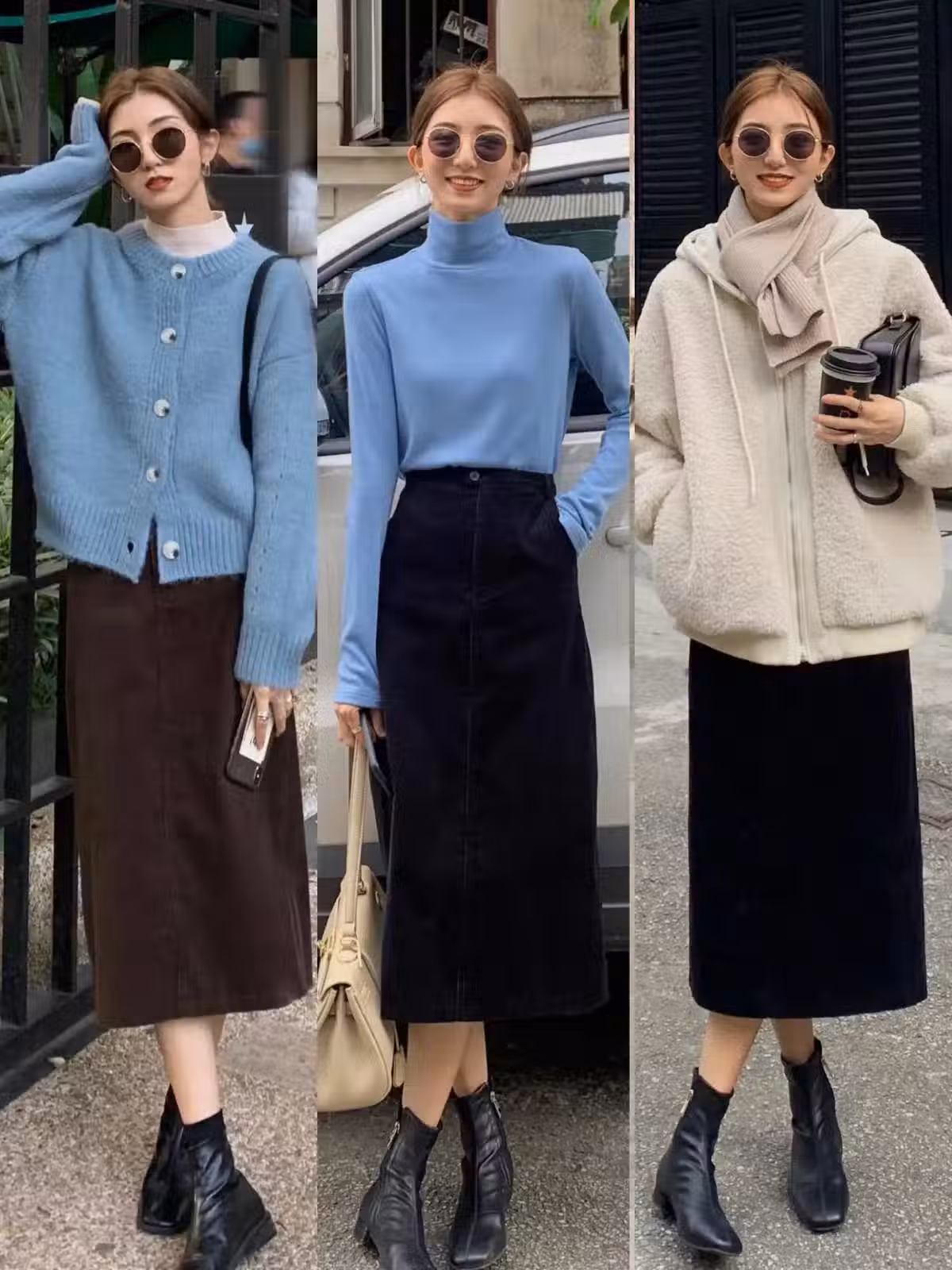 能蓋住臀部的偏長款春衫配長款百褶裙, 露出腳踝+白襪、皮鞋更有學生氣。 記得在內搭選擇用領結、亮色內搭等塑造亮點,才不會壓個子哦~