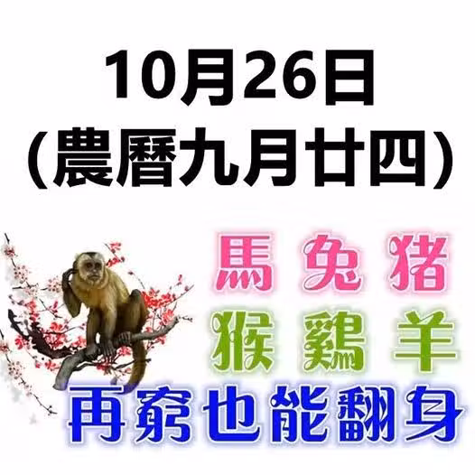 小運播報:2024年10月26日,星期六,農曆九月廿四。