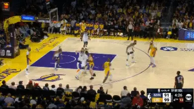 就猶如這個回合。當戈貝爾被濃眉牽制出禁區且換防詹姆斯無非及時回防籃下,讓濃眉在蘭德爾頭上完成精彩補扣。