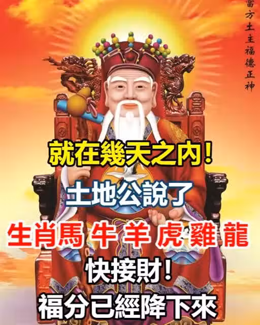 就在幾天之內!土地公說了「生肖馬牛羊虎雞龍」快接財!福分已經降下來!