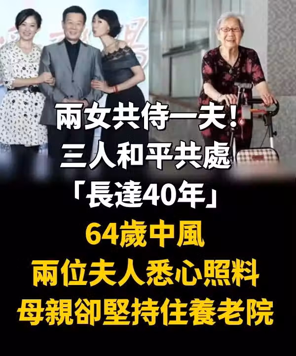 兩女共侍一夫!和平共處「長達40年」64歲中風「兩位夫人悉心照料」母親卻堅持住養老院