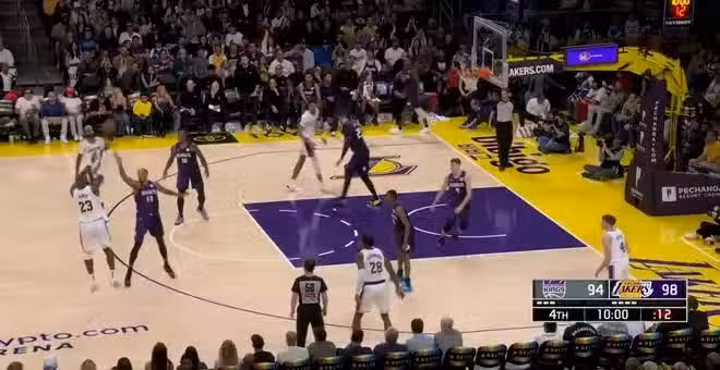 隨著接下來詹皇拉杆上籃命中,湖人108:94反超14分,打出了一節21-0的進攻狂潮,而詹姆斯在第4節連得了16分2個助攻,這只用了3分42秒,3分42秒連得16分,這種效率,這種命中率真的把國王隊打怕了。