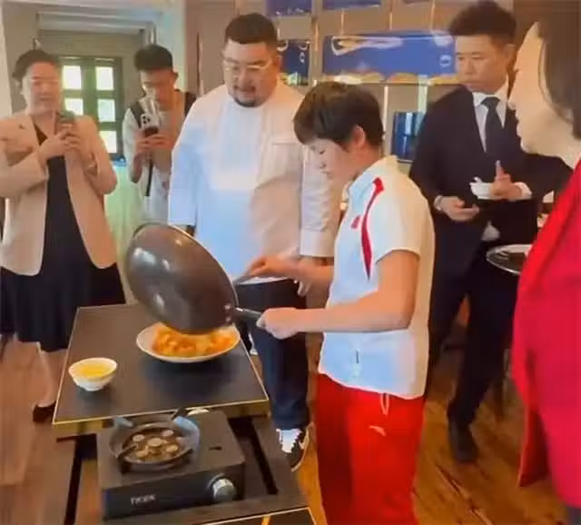 全紅嬋做的西紅柿炒蛋色香味俱全,在澳門大酒店,用的食材都是有保證的,所以會讓菜品顯得更加誘人。全紅嬋不僅僅是下廚過過癮而已,她是個好孩子,為了讓大家都能嘗到自己的手藝,擔心那些坐在桌子上聊天吃飯的運動員看不到,親自端著盤子挨個送,從視頻來看,她先去到陳夢、劉詩雯兩位姐姐面前,挨個「伺候」著,把大家安排的明明白白!