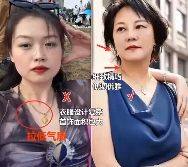 這類首飾往往色彩鮮艷卻缺乏質感,佩戴在身上會顯得廉價,難以體現中老年女性的成熟韻味與優雅氣質,反而拉低了整體形象。