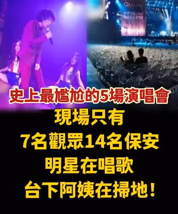 史上最尷尬的5場演唱會!現場只有7名觀眾14名保安,明星在唱歌,台下阿姨在掃地