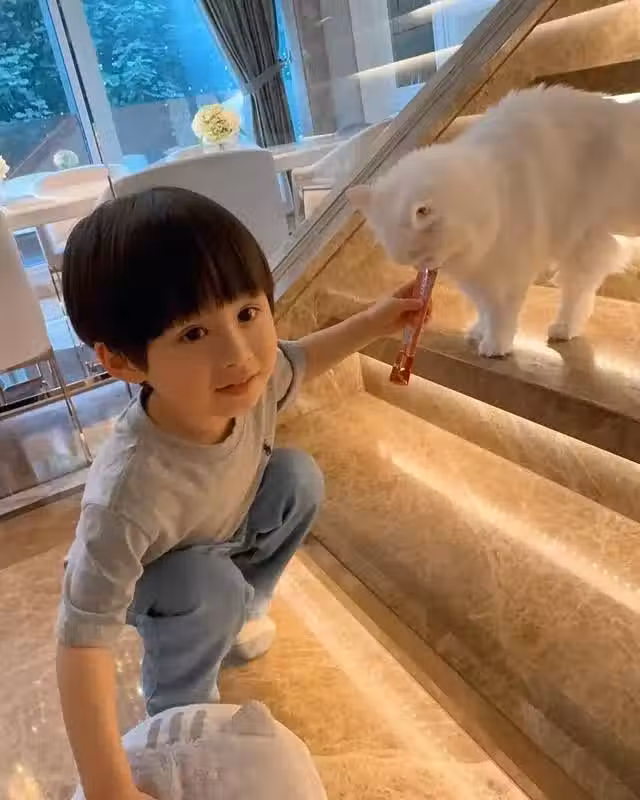 沈卓盈公開的照片,見到她帶3歲的兒子去徐淑敏家玩貓,小朋友愛護寵物,又摸又親又餵食,表現有愛。