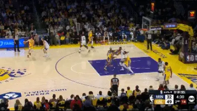 接到克內克特傳球後濃眉面框和戈貝爾一對一,最終以突破上籃終結。單就這個回合有兩個說明點: