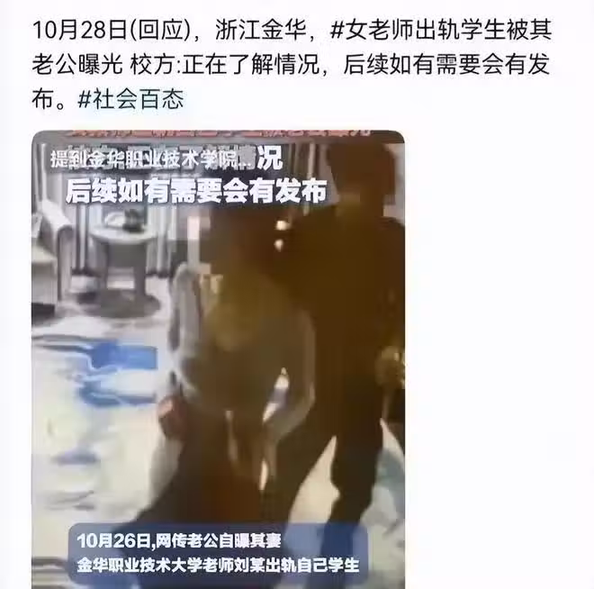 女老師出軌學生,被老公曝光,更多信息被扒,校方回應