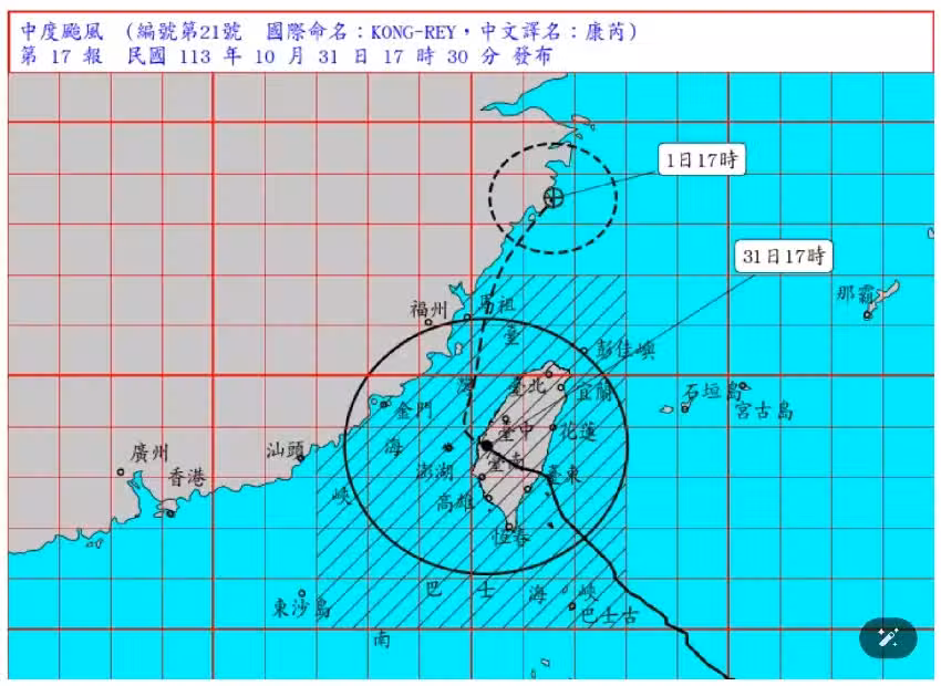 颱風康芮加速了!晚間20:00宣布「全台11/1颱風假出爐」各地一次看