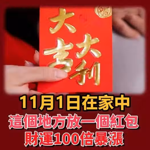 風水師偷偷透露:11月1日在家中這個地方,放一個紅包,竟能讓財運100倍暴漲,好運一路旺到年底!