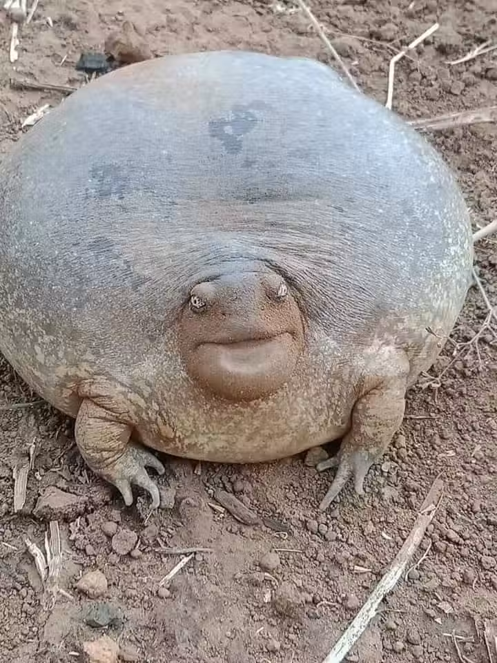 然而,這個外型搞笑的生物卻真實存在!根據生物學家Jodi Rowley的說法,這個「古怪小傢伙」其實是一隻「鈍頭穴居青蛙」(Glyphoglossus molossus)。它們主要分布在東南亞較為乾燥的環境中,平時過著與世隔絕的生活,大部分時間都深埋在土裡,只有在雨季來臨時,它們才會爬出洞穴來透透氣、找食物或者儲存水分,它的身體構造特別適合這樣的生活方式,這種不太顯眼、卻能自如鑽進土裡的身形,正是它們賴以生存的利器。