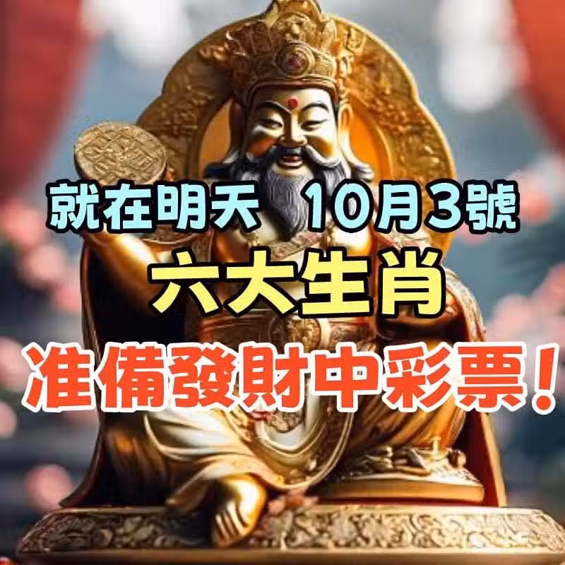 10月3號,六大生肖註定迎來好運、財運爆棚的美好一天!明天的運勢對屬馬、屬猴、屬羊、屬蛇、屬雞和屬豬的朋友來說簡直是鴻運當頭,財氣旺得讓人羨慕不已!這一整天,財富和好運都在向他們招手,橫財、偏財滾滾而來,財富如潮水般湧入,讓他們享受數錢數到手軟的快樂。 財神已經駐守在他們身邊,準備讓這六個生肖在明天就體會到發橫財、中大獎的快感!