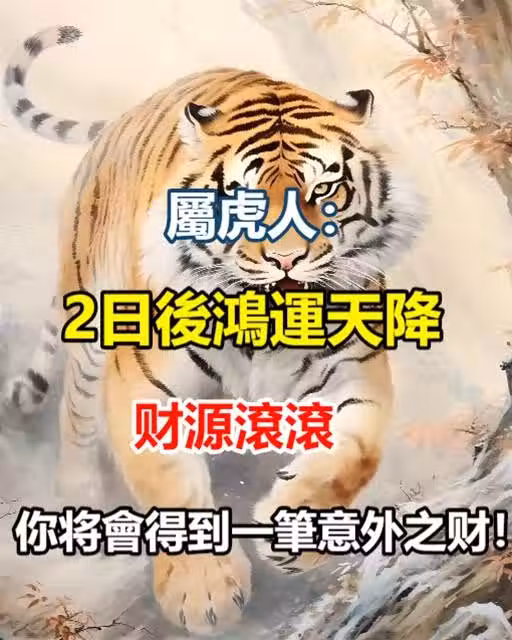 生活也像一隻蓄勢待發的老虎,它隨時可能給你帶來驚喜。 接下來的明後兩天,我預感我們將會迎接110%的「喜」,這是一次難得的機會,千年等一回,何不花三秒鐘,接下這份「囍」呢? 在這個瞬息萬變的世界裡,每個人都在為生活奔波,承受著各種壓力,無論是工作上的困擾,還是家庭中的瑣碎,都讓我們倍感疲憊。 我們渴望改變,期待好運降臨,就像那句古詩所描繪的,「人生若只如初見,何事秋風悲畫扇」。 但請記住,每個挑戰的背後,都隱藏著轉機,每一場雨過,都會迎來彩虹。