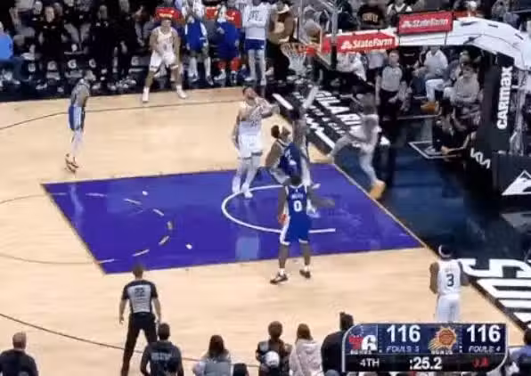 最終費城116-118惜敗給太陽,喬治首發32分鐘,投籃14中4(三分7中1)得到15分5板4助,同時出現6次失誤。