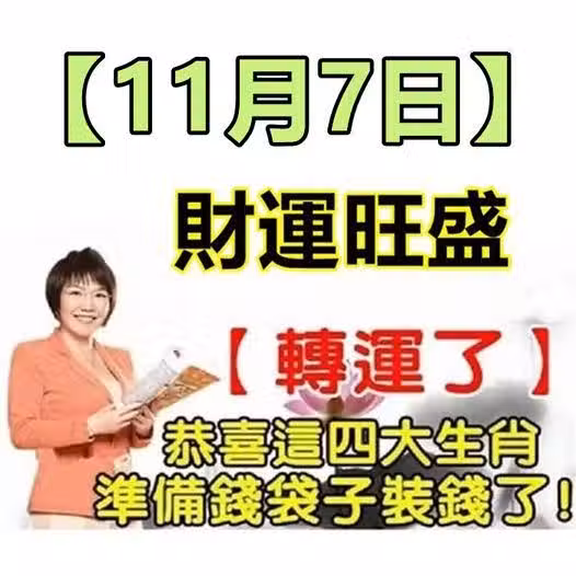 恭喜了7大生肖,在未來三天( 11月20~23日)即將有一筆橫財,準備好收錢吧