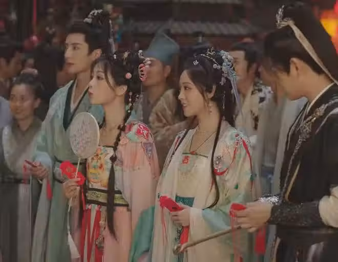 這裡虞書欣和丁禹兮的表演倒是比較平,反而虞書欣身後的群演更「有戲」。