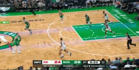 庫里今天出手很少,首節2中1,第二節還剩3分鐘,才命中本場第一記三分。維金斯找回手感,次節4中3獨得8分。凱爾特人失誤太多了,首節和次節各5次失誤,被勇士打反擊。穆迪命中壓哨拋投,半場戰罷,勇士51比40領先11分。