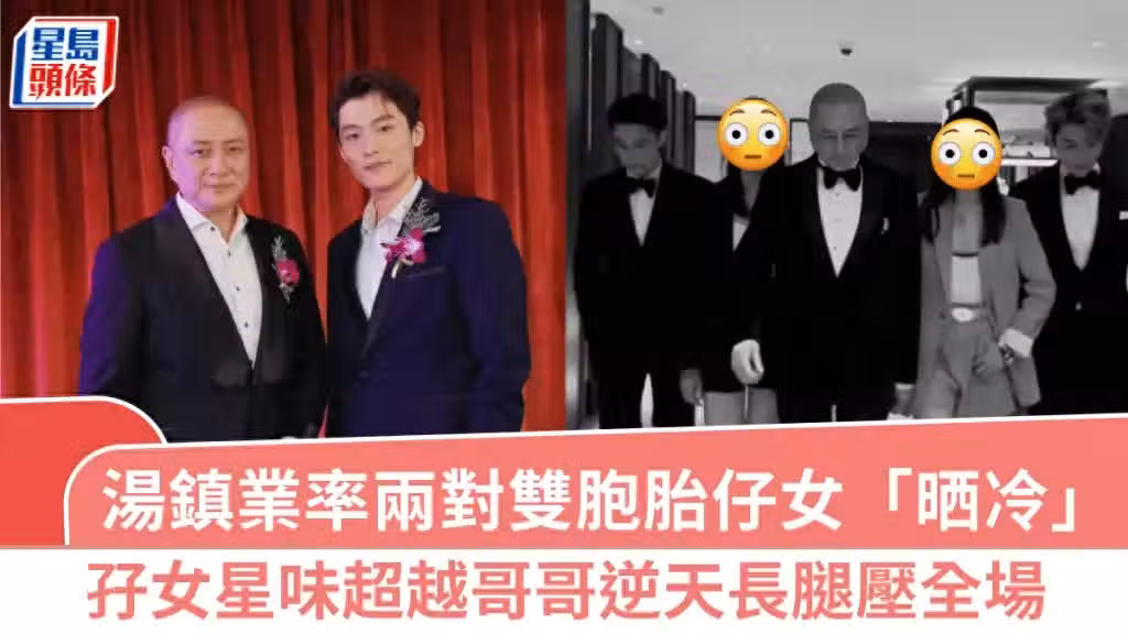 現年66歲、五虎之一的湯鎮業上月榮升做岳父,他與「翻版林青霞」姜坤所生的大女兒湯愛嘉結婚,婚禮當日相當隆重,不少城中的名人、紅星出席,場面衣香鬢影。不過搶鏡還有湯鎮業子女罕有同場,雙胞胎兒子湯君慈和湯君耀,以及同父異母的雙胞胎妹妹湯樂欣和湯樂怡同樣出色,一家都是靚人一族。