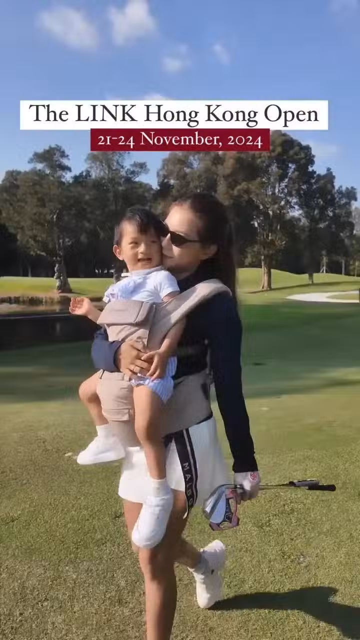 何雁詩帶娃打高爾夫!背2歲罕見病兒子在胸前揮桿,盡展堅韌母愛