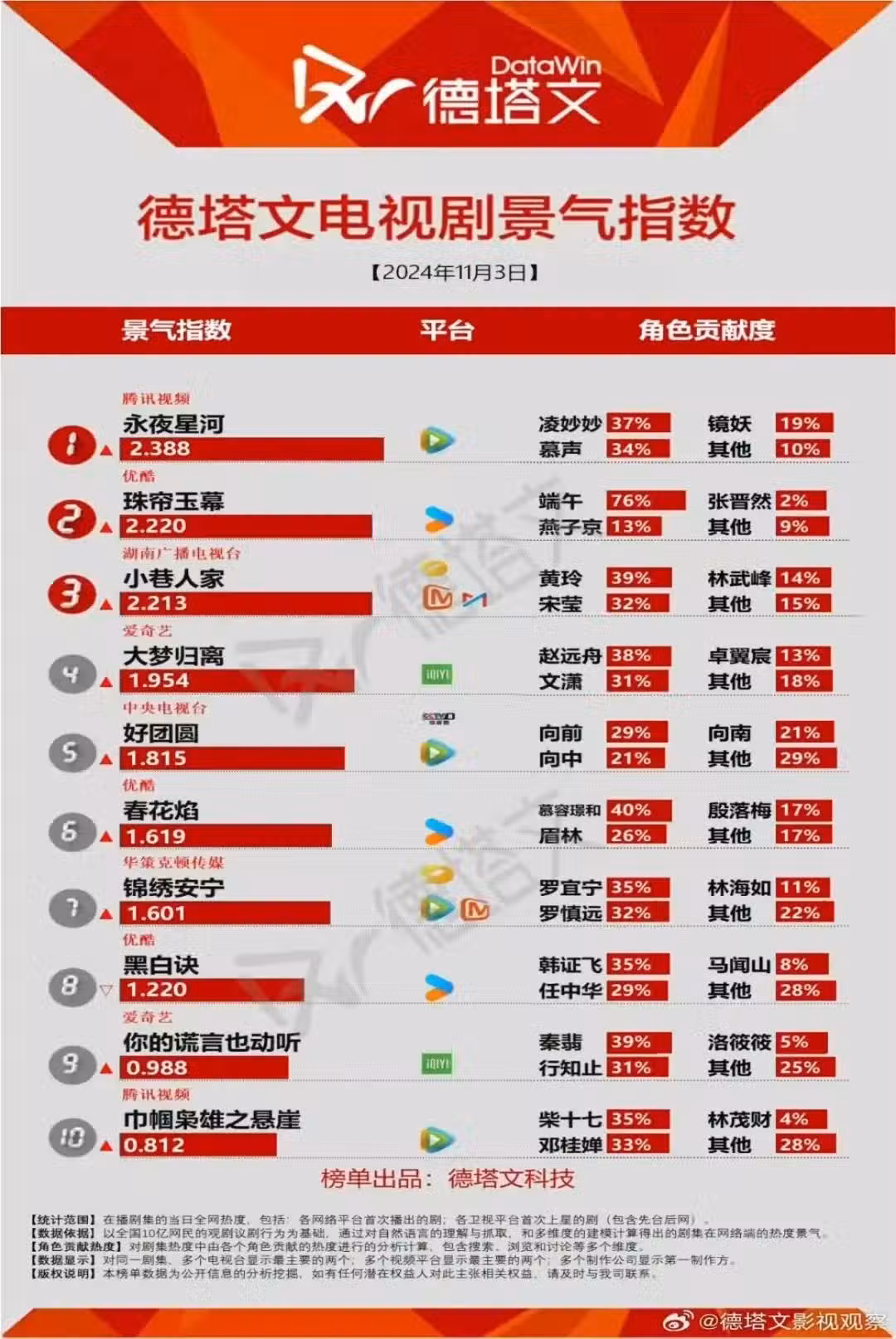 10部電視劇熱榜:《黑白決》倒數,《珠簾玉幕》第二,第一眾望所歸