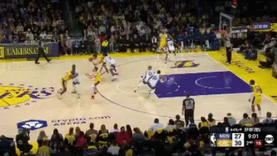 里夫斯、濃眉強側手遞手、掩護破太陽區域聯防。值得一提的是,此時詹姆斯也在場。潛台詞:里夫斯分擔老詹持球壓力。更重要的是,里夫斯的持球吸引了瓊斯的協防從而為拉塞爾創造出得分機會。